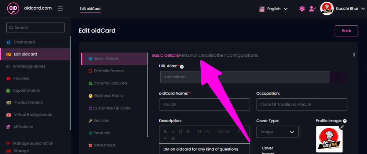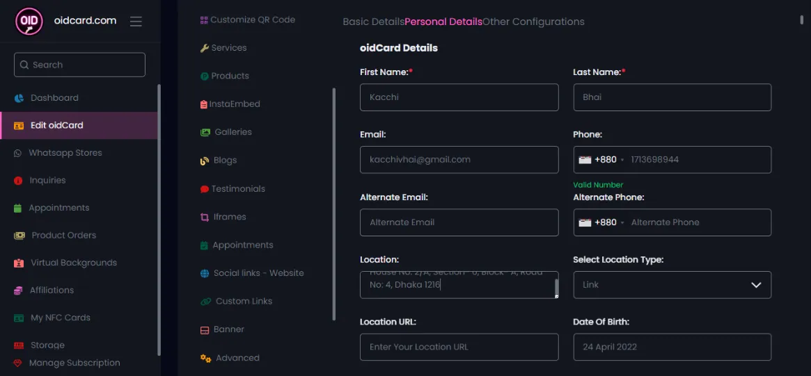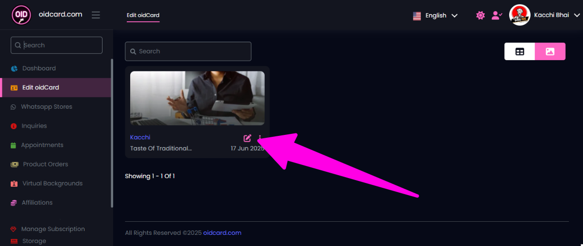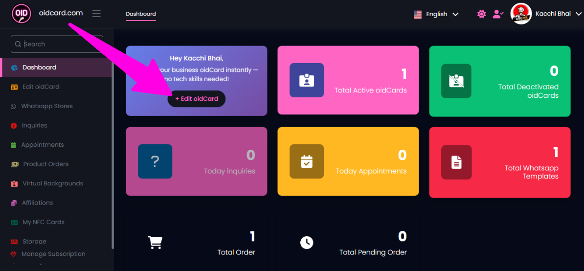 - সবার প্রথমে নিজের oidCard-এর account login করে Dashboard-এ edit oidCard button-এ click করুন