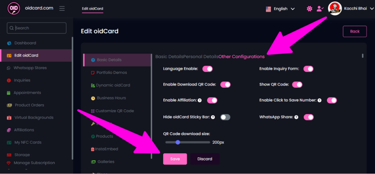- Hide oidCard Sticky Bar: এটি enable না করায় ভালো । এটি enable করলে আপনার website-এ একটি icon ভাসমান অবস্থায় থাকে যেটিতে (What’s app, QR code Download, Share এই ৩টি option থাকে) সেটি গায়েব হয়ে যাবে।